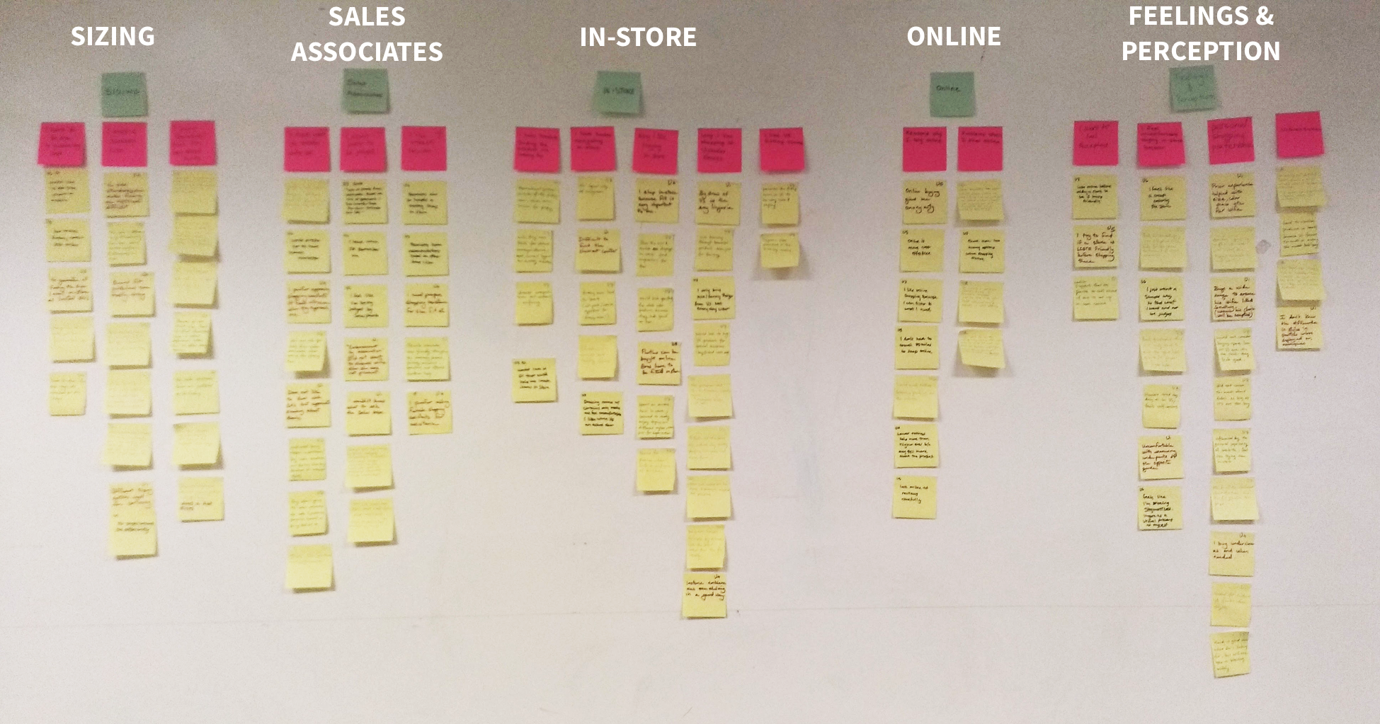 In a group session, we analyzed our notes from all the previous formative research on an affinity diagram. This helped us categorize our notes to identify key user needs.