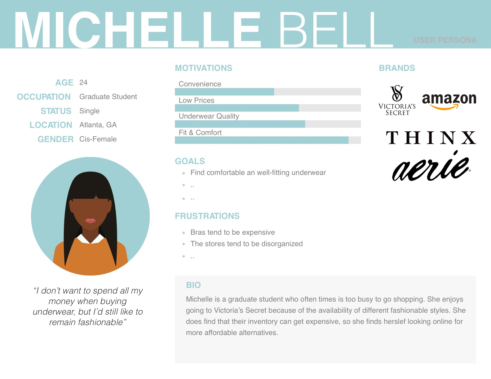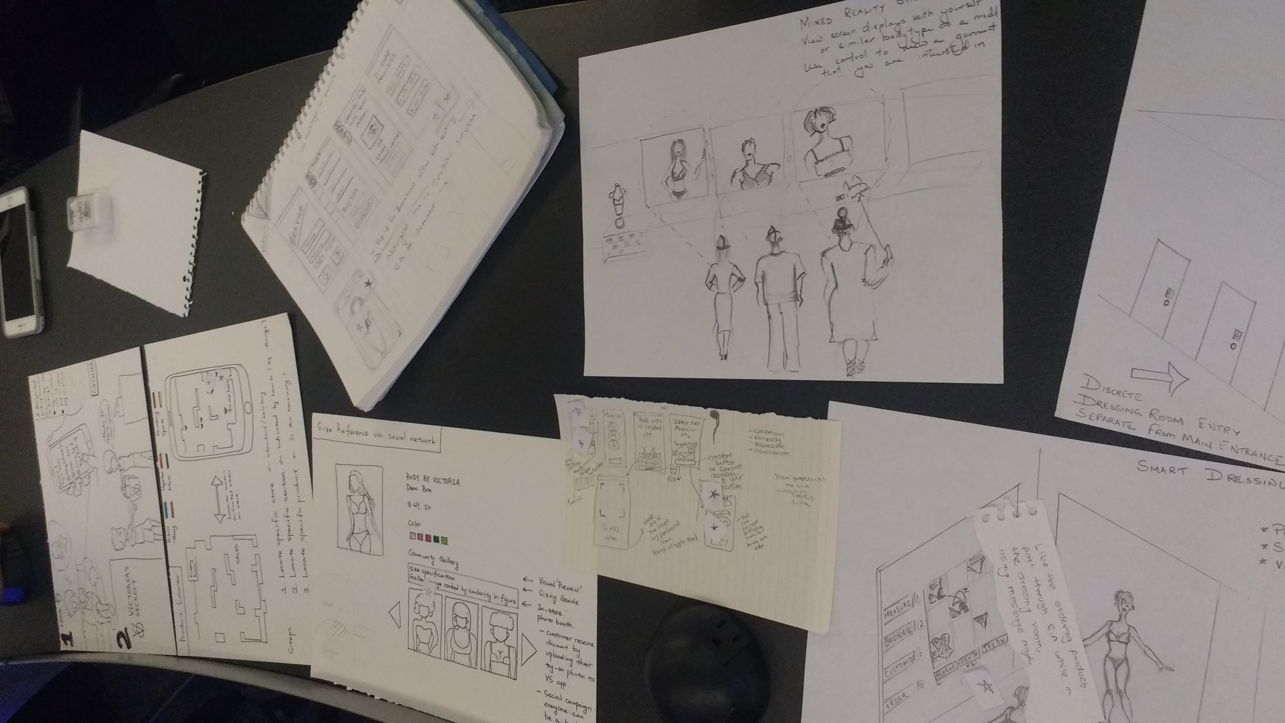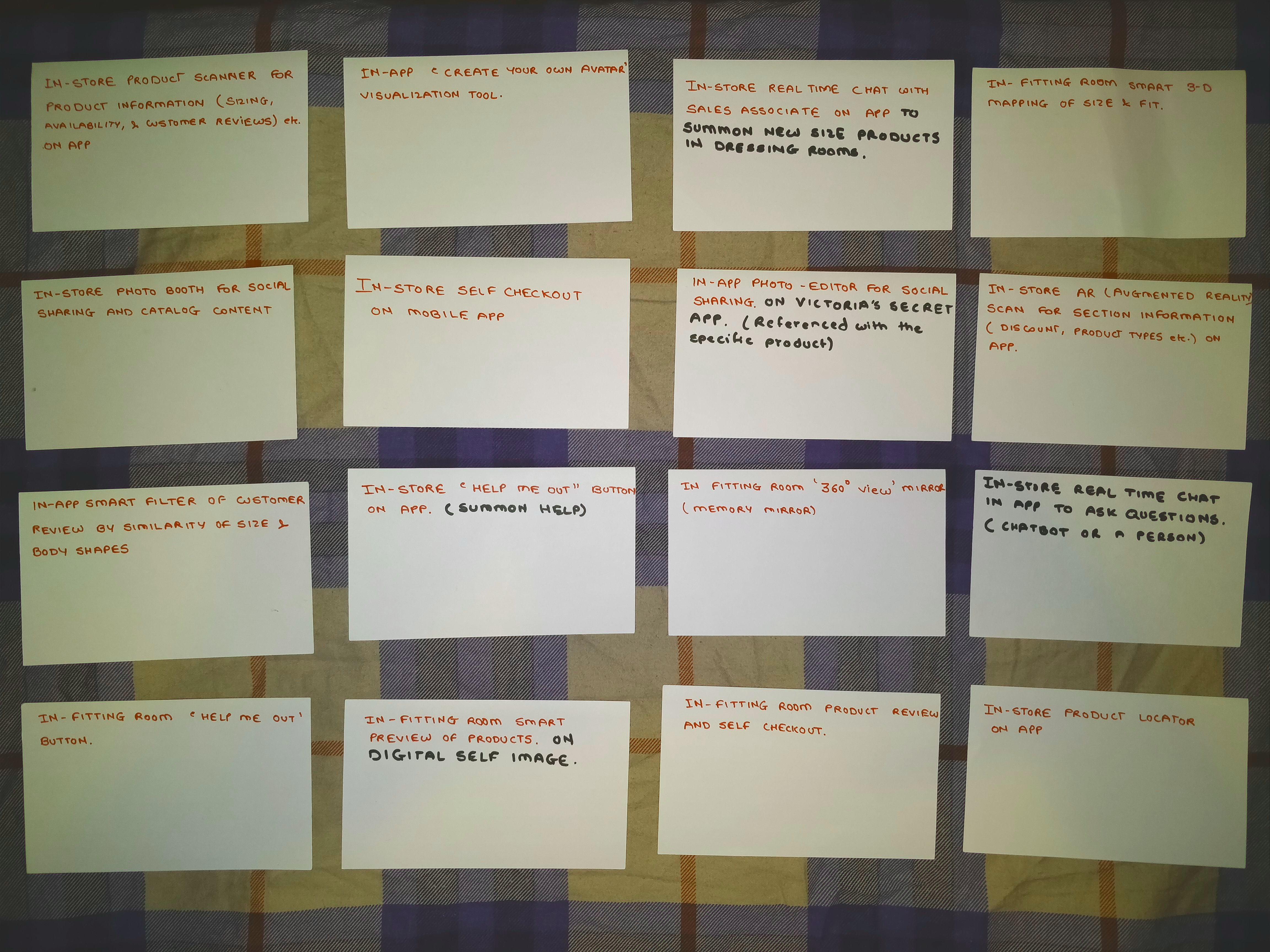 Contextual Inquiry : We conducted three contextual inquiries to gain a more in-depth understanding of underwear shopping experience with Victoria’s Secret both in-store and online. Two of the contextual inquiries were conducted at two separate physical locations in Atlanta. The third contextual inquiry was conducted over a video call for the online experience.