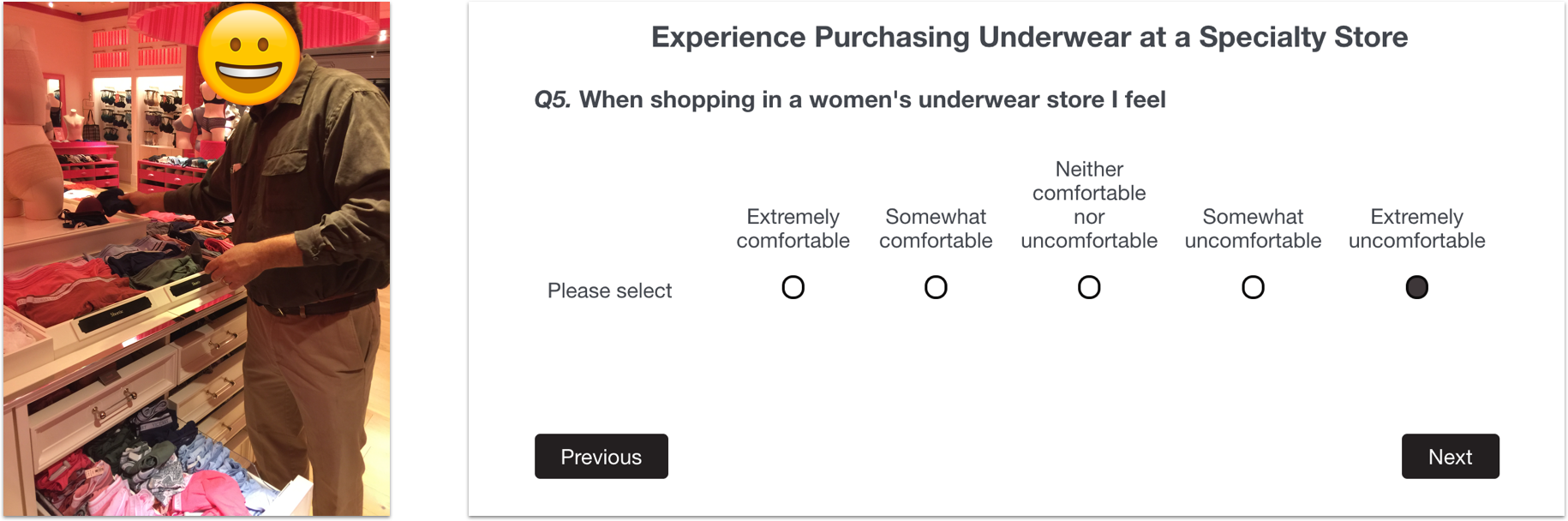 User shopping for women's underwear who feel discomfort while shopping in-store